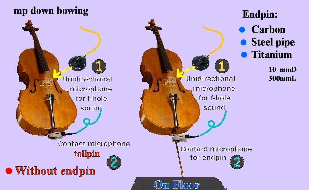 Cello's 46 chromatic data measured last year, A(442Hz) to C(66Hz), played mezzo-piano and arco, with 3-material 300mm-length endpins, are being reviewed closely again.