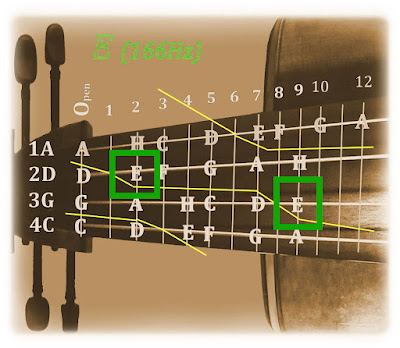 チェロの E(166Hz)トーンは、8の字形の取りうる最大共鳴軌道よりも半音~全音分の波長が短い軌道をとっている。周期=6.04mS、波長=2.05m。偏りなく全方位に ほぼ同期して音を放散している。丁寧なボーイングを行うと弓でもピチカートと同様な1ビートのシンプルな正弦波形が得られる。